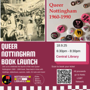 WHAT: Queer Nottingham Book LaunchWHEN: 6.30m, Thursday 18th SeptemberWHERE: Nottingham Central Library, 1 Carrington Street, Nottingham NG1 7FH